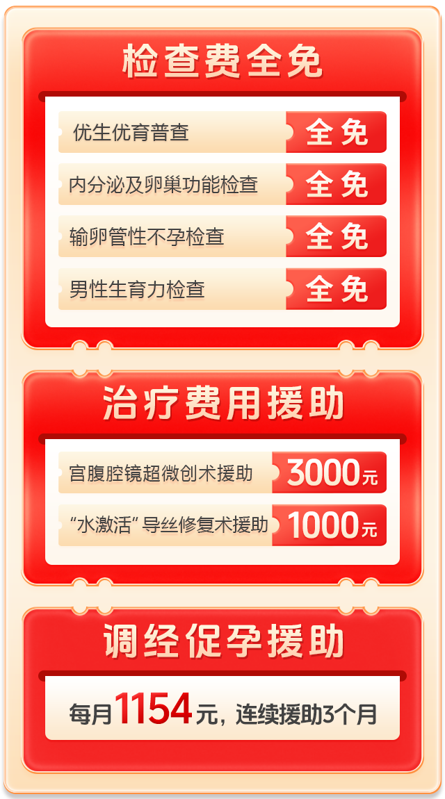为了减轻不孕不育家庭的经济压力,郑州慈善总会送子公益基金为来院患者提供“优生及不孕普查保障型援助”和“疑难性不孕深度帮扶服务”。患者只需报名登记,即可通过免申报、直接补贴的方式,享受全方位的专属援助服务。点击在线咨询,免费申请补助